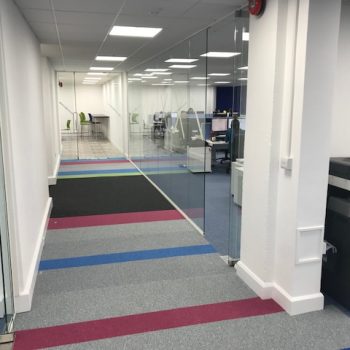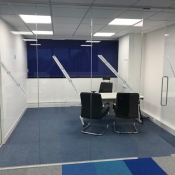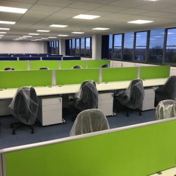 Strip out, Fit out , Stud Partitions , Glazed partitions , Carpentry works , Suspended ceilings, Blinds – supply and fit, Kitchen install, Flooring – Carpet, Safety flooring fitting, Decorations , Data and electrical install, Supply and fit of furniture Desks, Chairs screens and Wallstore cupboards , Tape and jointing